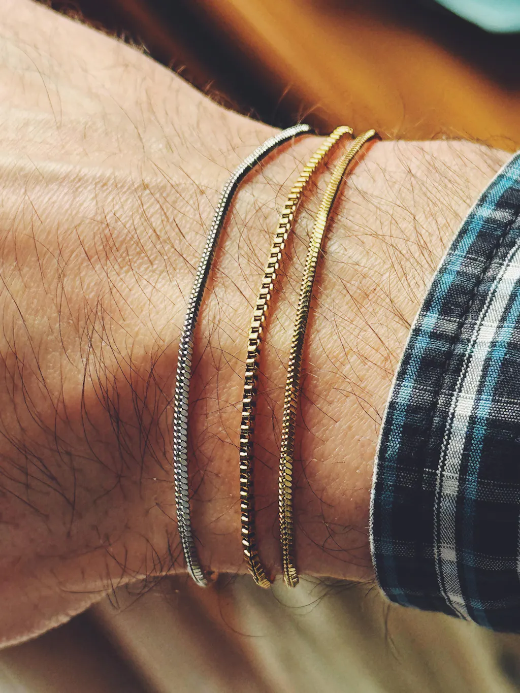 This size fits more than 95% of our customers. The bracelet is made to fit an average man’s wrist between 16 CM (6") to 19 CM (7.5"). The exact measurements are around 18 CM (7") without the extension chain. Extend the chain up to 20 CM (8") with the 2 CM (1") extension chain.