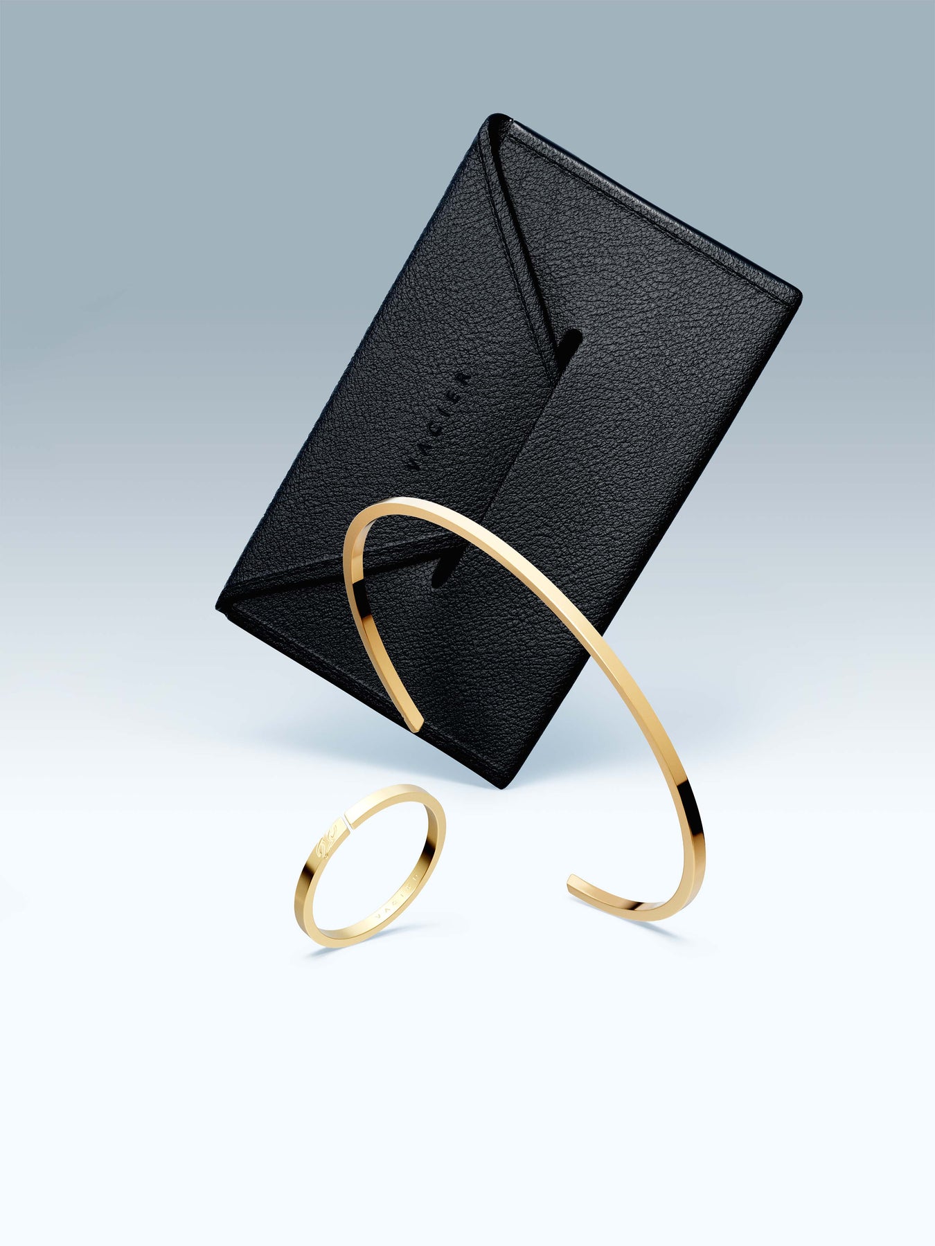 Con l'anello impilabile Unisize, il bracciale impilabile Unisize e il Portafoglio Minimal Vacier