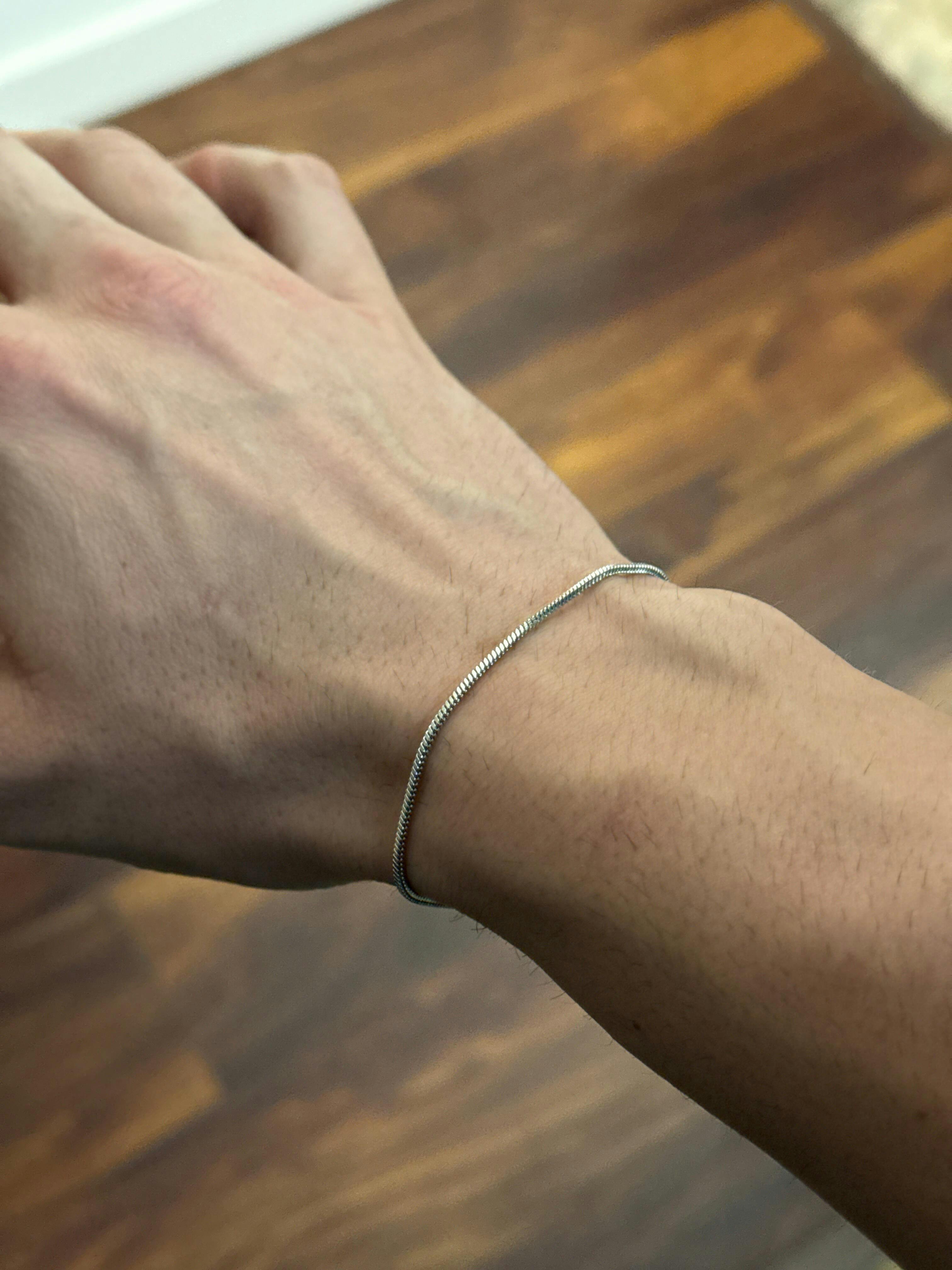 This bracelet is designed to fit wrists with a circumference between 16 CM (6") and 19 CM (7.5"). The bracelet is 18 CM (7") long and it comes with a 2 CM (1") extension chain that can be used to increase the length up to 20 CM (8"). If you're unsure about your size, this bracelet will fit the majority of our customers.